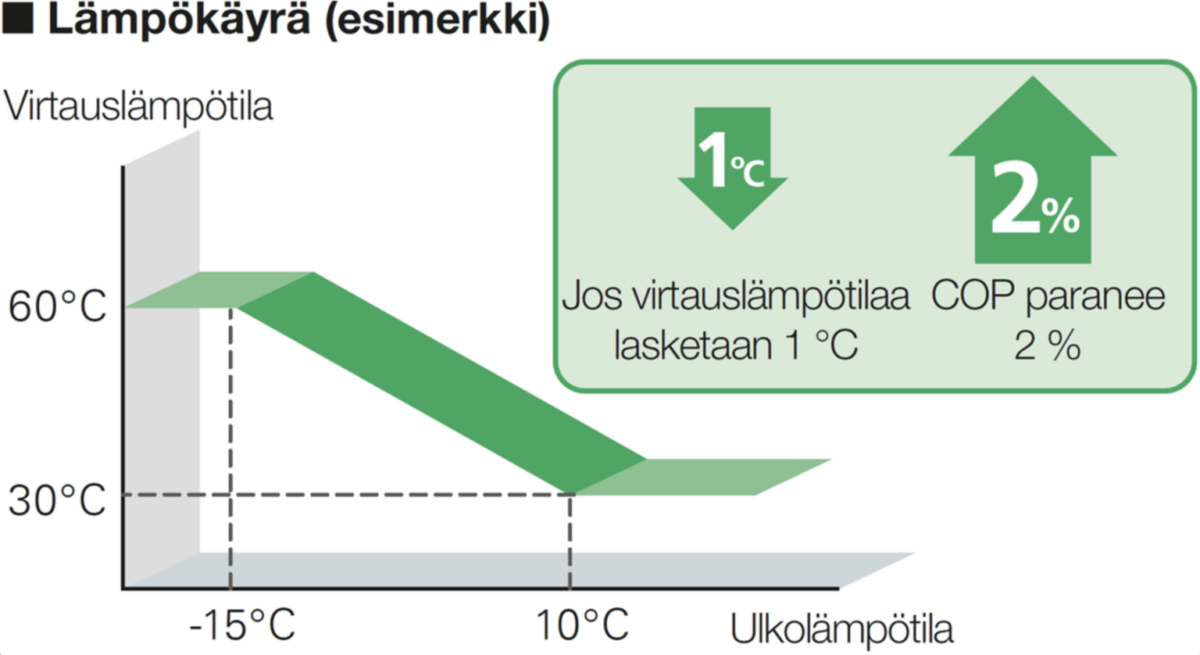Usein perinteisillä lämmönlähteillä toteutettujen lämmitysjärjestelmien pelkän ulkolämpötilan mukaan ohjattavat virtauslämpötilat ovat useita asteita yli todellisen tarpeen.
